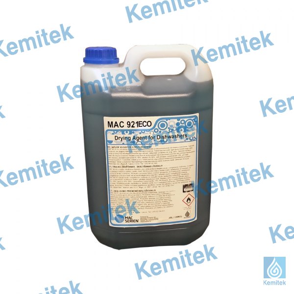 MAC 921 ECO is a drying agent which is suitable for all types professional dishwashers. Prevents water stains and favors drying. Reduces water surface tension and foaming during the washing process. Suitable for all water types. Does not damage dishes nor dishwashers. Prevents limestone.