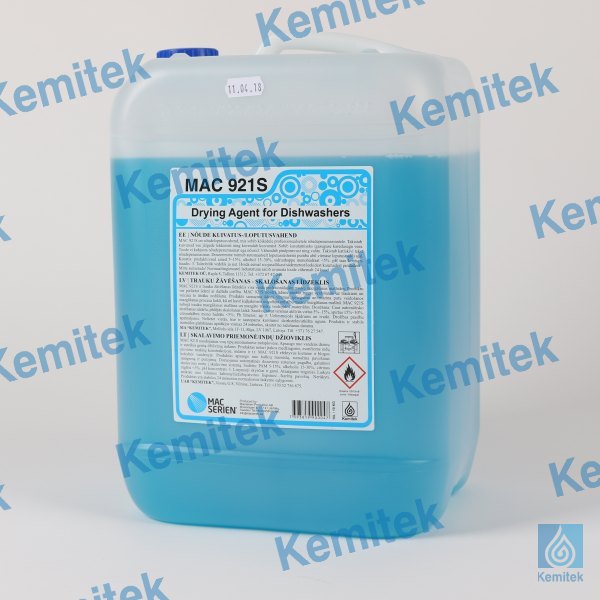 MAC 921S is a drying agent which is suitable for all types professional dishwashers. Prevents water stains and favors drying. Reduces water surface tension and foaming during the washing process. Suitable for all water types. Does not damage dishes nor dishwashers. Prevents limestone.