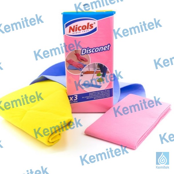 Universāls audums NICOLS DISCONET (3 lupastas paciņā) dažāda veida grīdas segumu mazgāšanai. Audums satur dabības izcelsmes šķiedras ar augstu šķidrumu uzsūktspēju, pateicoties kurām ar šī auduma palīdzību ir iespējams veikt kvalitatīvu grīdas seguma mazgāšanu. Audums ir viegli skalojams.