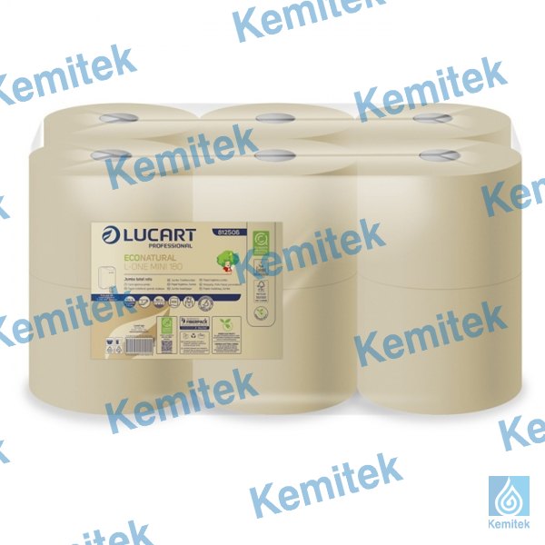KEMLUC812170Lucart ECO NATURAL L-One MINI tualetes papīrs 180m, 2-slāņi, 12 ruļļi iepakojumā (P12). Ruļļa diametrs 18,0 cm, rullī 900 loksnes augstas kvalitātes tualetes papīra. Papildus ziņas par ruļļa izmēriem: @ ruļļa garums 180 m; @ Loksnes platums 11,6 cm; @ Loksnes garums 22,5 cm; @ salvešu skaits rullī - 800 salvetes;
