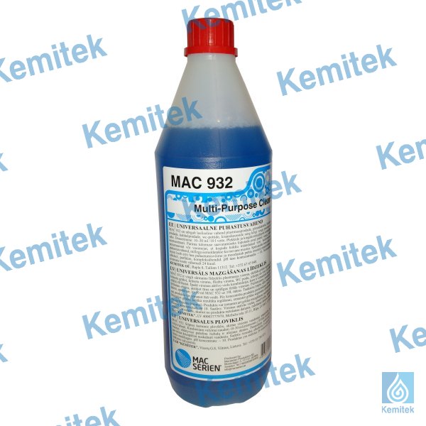 MAC 932 ir viegli sārmains, līdzeklis plastmasas virsmu, dažādu grīdas segumu (linoleja, akmens, flīzētu un krāsotu grīdu), krāsotu virsmu, flīzētu virsmu, WC podu, izlietņu un visu citu ūdens izturīgu virsmu (izņemot stiklu) tīrīšanai. Īpašā virsmas aktīvo vielu kombinācija, kura ir izmantota šajā produktā nodrošina īpaši labu tīrīšanas efektu, atstājot tīras un spīdīgas tīrītās virsmas. Pielietojums: produkts ir jālieto atšķaidītā veidā ar ūdeni, apmēram 10-30ml uz 10 litriem ūdens. Taukainu traipu, eļļas traipu un apavu atstāto švīku tīrīšanai produktu var izmantot tīrā veidā. Pēc koncentrēta produkta pielietošanas tīrīto virsmu noskalot ar tīru ūdeni. Mazgājot grīdas, labāka rezultāta iegūšanai, izmantot grīdas segumam atbilstošas kvalitātes grīdas mazgāšanas aprīkojumu (mopus).