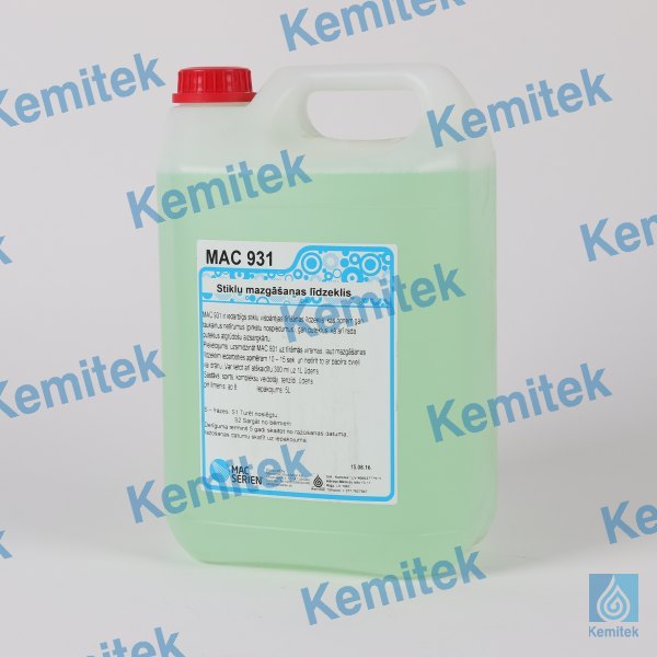 MAC 931 ir iedarbīgs stiklu vispārējās tīrīšanas līdzeklis, kas noņem gan taukainus netīrumus (pirkstu nospiedumus), gan putekļus, kā arī rada putekļus atgrūdošu aizsargkārtu.