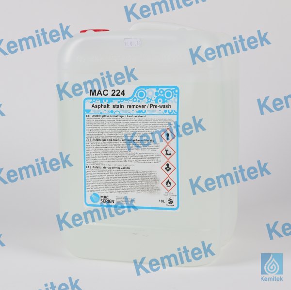 Efektīvs produkts, lai ar tā palīdzību attīrītu no automašīnu virsbūvēm asfalta un sāls nogulšņu atstātos traipus. MAC 224 var lietot arī, lai attīrītu automašīnu virsbūves, dzinējus, šasijas utt. Šim attaukošanas līdzeklim piemīt ļoti labas asfalta, tauku un eļļas attīrīšanas īpašības. Nepielietot produktu tiešā saules staru ietekmē un/vai uz sakarsētas automašīnas virsbūves. Jāpielieto tīrā veidā, neatšķaidot ar ūdeni. Produkta uzklāšanai var izmantot smidzinātāju un/vai spiediena balonu. Pēc uzklāšanas ļaujiet līdzeklim iedarboties pāris minūtes - pēc tam noskalojiet ar ūdeni.