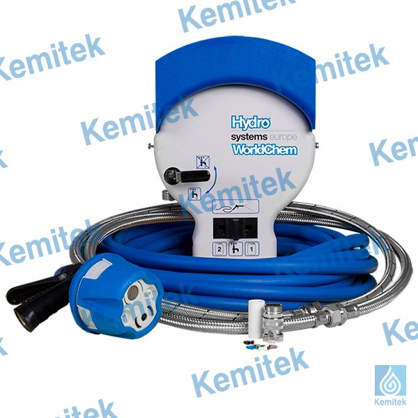 WORLDCHEM - 2, sanitārijas izsniegšanas sistēma. Uz sienas uzstādīta putošanas un izsmidzināšanas dozēšanas sistēma. Grīdu un sienu mazgāšanas komplekts,